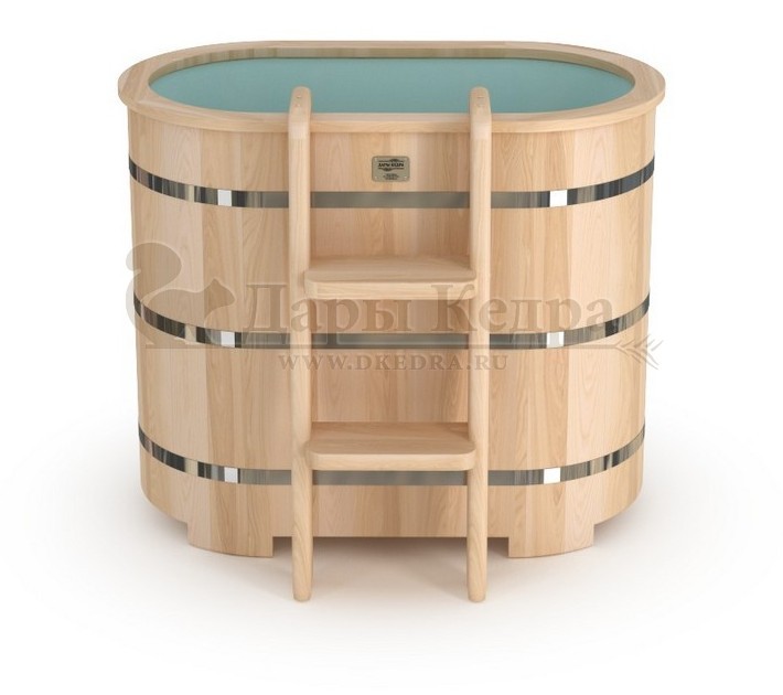 Бондарная овальная купель из кедра с пластиковой вставкой Особенность этой модели заключается в сборке купели по технологии лунный-паз. Паз (углубление) одной доски прочно соединяется с выемкой следующей. Такая сборка осуществляется без клея и гвоздей. Готовая конструкция прочно фиксируется нержавеющими обручами. Пластиковая вставка придает изделию красивый внешний вид, увеличивает срок службы и облегчает уход за купелью. Для удобства пользования купель оснащена лавочками, приставной и внутренней лестницей из кедра. Подходит для комнатного и уличного использования. Купели с пластиковой вставкой рекомендуется заказывать для непрерывного использования в банных комплексах или оздоровительных центрах. Внутренняя чаша облегчает уход за изделием и увеличивает срок службы купели.