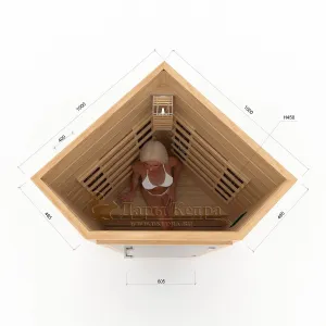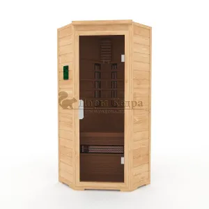 Это специально оборудованная кедровая кабина для прогрева тела человека сухим теплом. Воздух в таких парных не нагревается. Инфракрасные лучи воздействуют на тело, равномерно прогревая мышцы, суставы и органы. Керамические излучатели похожи на лампы, имеют высокую температуру нагрева, поэтому защищены противоожоговыми решетками. Тело человека в таких саунах нагревается интенсивнее. Работает кабина за счет электричества. Установка сауны в угол, позволяет рационально использовать пространство помещения. Подходит как для домашнего использования, так и для коммерции.