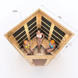 Трёхместная угловая инфракрасная сауна кабина из кедра с карбоновыми излучателями